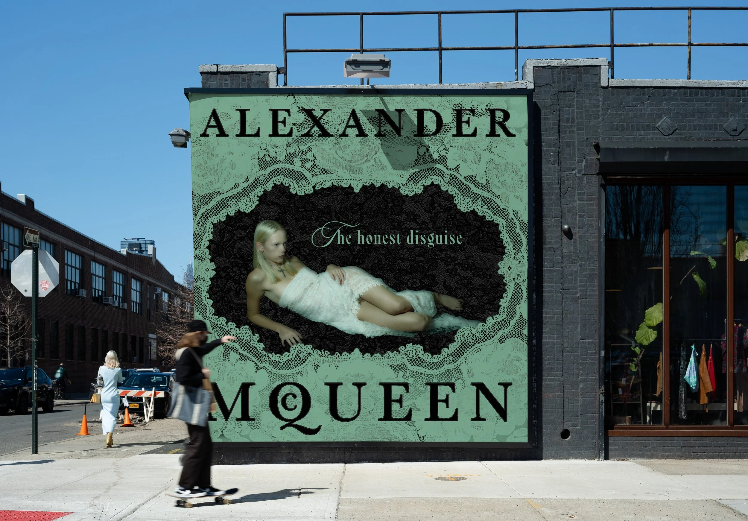 It’s not just a space wrapped in lace. During New York Fashion Week, The Factory becomes a women-only social club hidden in plain sight. Black lace signals what’s inside. Entry comes with the purchase of Alexander McQueen. Inside, the room breathes and power moves between those who step in and take it.
