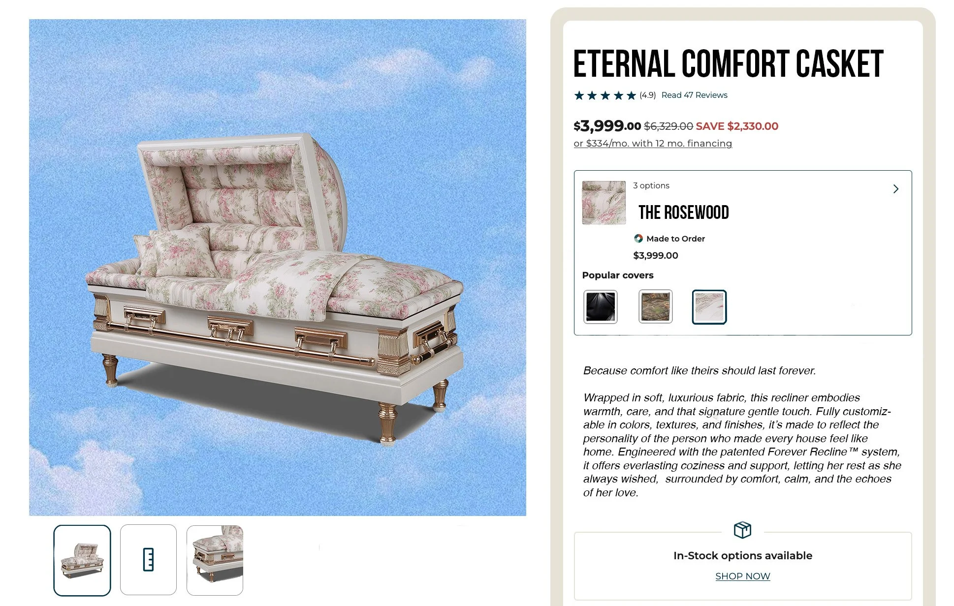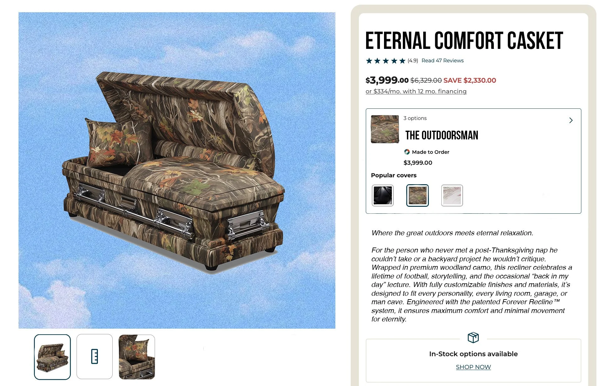 “La-Z-Boy made a coffin that looks like your dad’s recliner and honestly, it feels right.” - Adweek