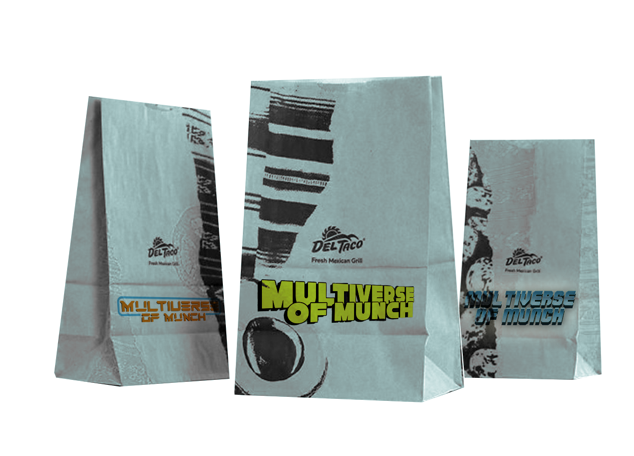 Alongside the campaign release, Del Taco will rebrand their bags, wrappers, menu design, and overall packaging to match the multiverse style/design.